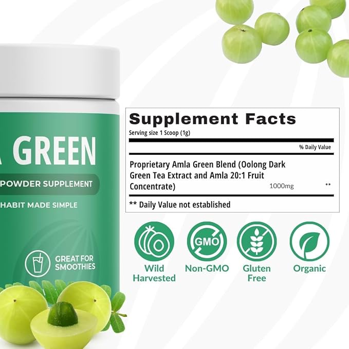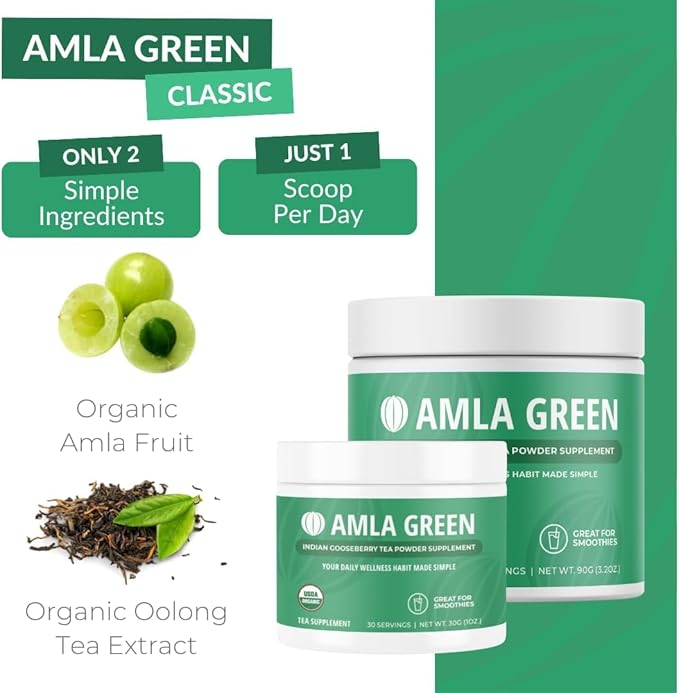 - DAILY SUPERFOOD TEA: With over 10,000 daily active users, Amla Green is the go-to source for antioxidative benefits mixed into smoothies, breakfast bowls, or as a hot or cold morning or evening tea. One scoop per day provides a natural method for supporting your most critical areas of health, with a smoother taste and better flavor than traditional amla supplements.