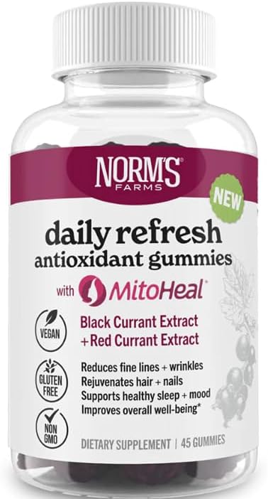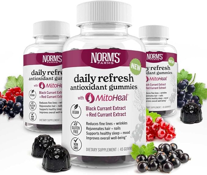 Norm's Farms Elderberry Antioxidant Gummies - Daily Refresh w/MitoHeal, 500mg Red & Black Currant Extract - Sleep, Mood, Skin, Hair & Nail Support - USA Made, Vegan, Non-GMO, Gluten-Free - 45 Gummies