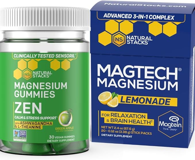 NATURAL STACKS Magtech Magnesium Drink Mix + Zen Magnesium Gummies Bundle - 4 Forms of Magnesium - Calm & Stress Support* Supports Brain Health* - 35 Servings