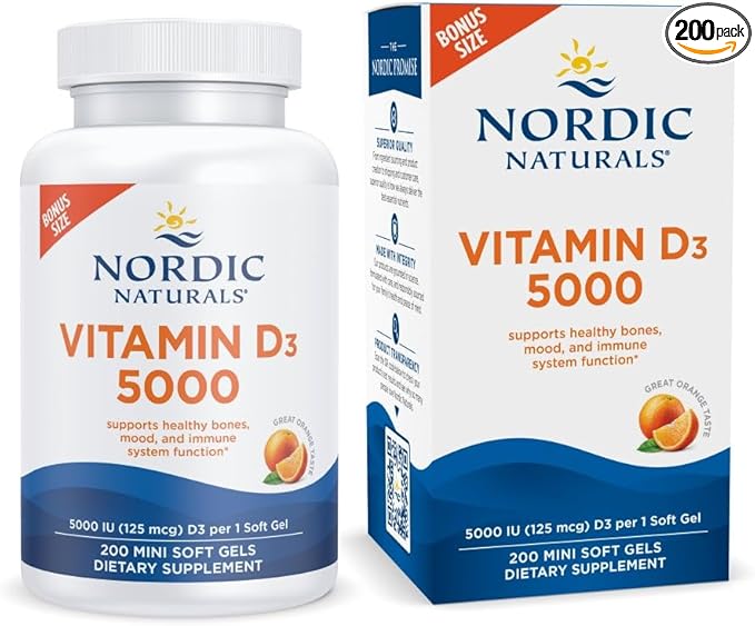 Nordic Naturals Vitamin D3 5000, Orange - 200 Mini Soft Gels - Support for Healthy Bones, Mood, & Immune System - Vegetarian - Non-GMO - 200 Servings