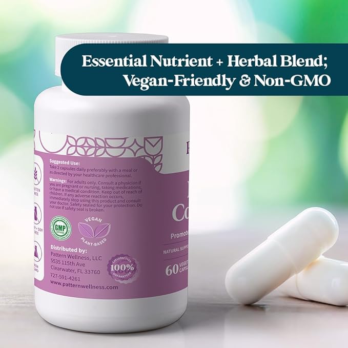 Pattern Wellness PMS Complex - Hormonal Balance, Cramp, Mood, + Period Support - Essential Vitamins, Minerals, & Herbal Extract Blend for Women - 60 Vegan Capsules