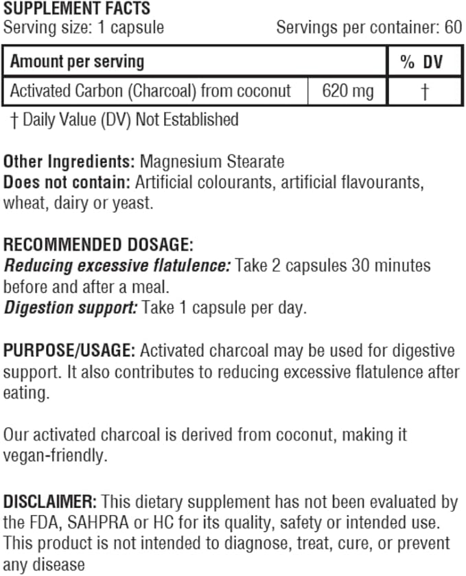 - Whole Body Benefits: In addition to digestive support, activated charcoal's detoxifying properties may contribute to skin rejuvenation when taken as directed.