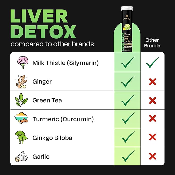 Auric Herbal Liver Support Supplement | Milk Thistle (Silymarin), Turmeric, Garlic, Ginger for Liver Health | Advanced Detox & Cleansing Formula for active Liver | 80 Tablets | Plant Based Gluten-Free
