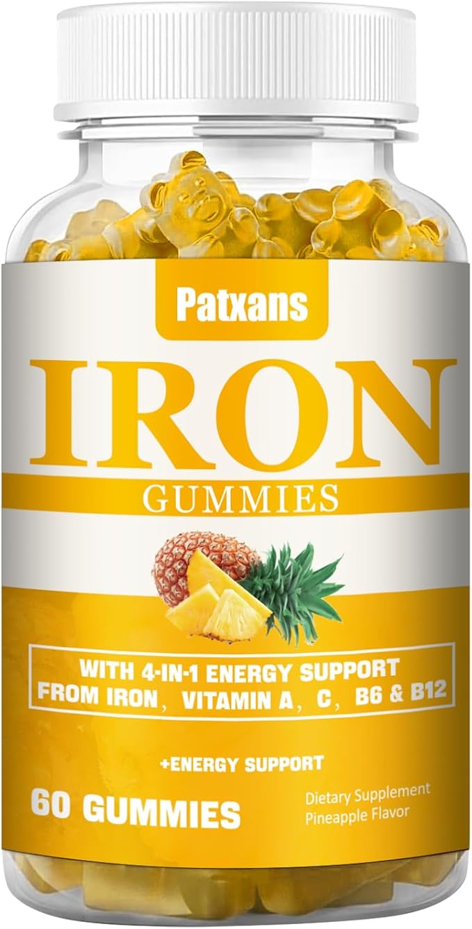 - Why Choose Patxans : Each Patxans iron gummies contains 50mg vitamin A, 50mg vitamin C,1mg vitamin B6, 1mg vitamin B12,100mg Iron, are an easy to take gummy suitable for women, men & children, adult. Patxans supplements gummies are pectin-based. You can incorporate them into your daily life.
