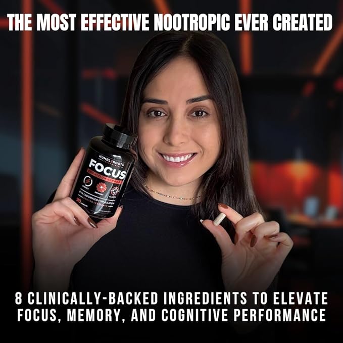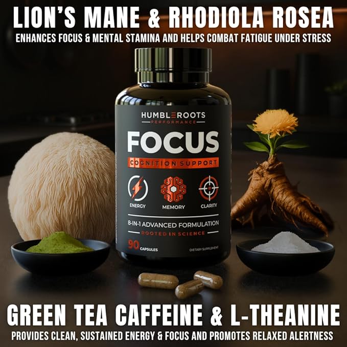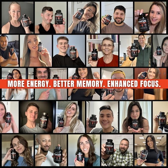 - šÆ šššššš šš” šš¢ššØš¦: Peak performance requires 100% of your focus. Featuring a powerful combination of CognatiQ, Cognizin Citicoline, Huperzine-A, organic Lion's Mane Mushroom, Green Tea Caffeine, L-Theanine, & Vitamin B12, our all-natural FOCUS capsules offer a synergistic blend of nootropics known for their ability to support brain health, sharpen concentration, and enhance memory retention.