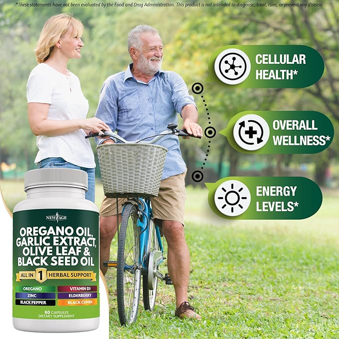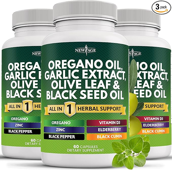 NEW AGE Oregano Oil Garlic Extract Olive Leaf with Astragalus - Supplement for Women and Men - 180 Count