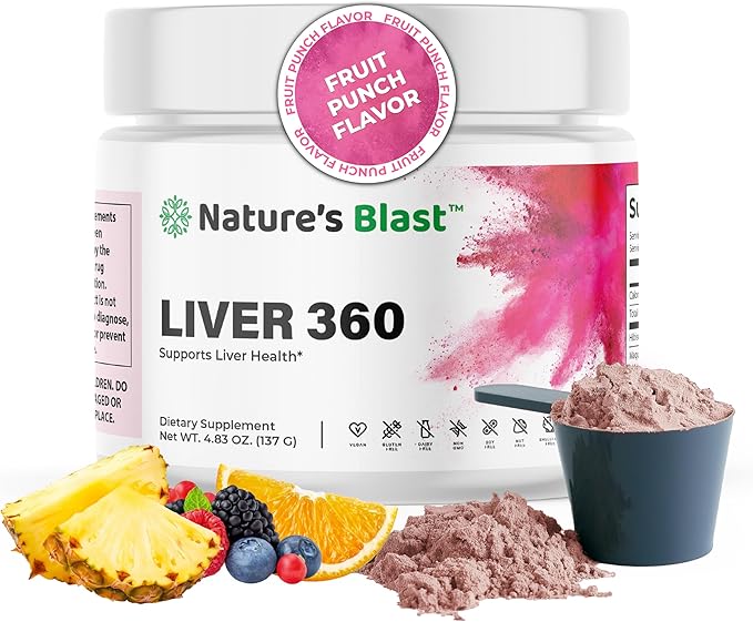 Liver 360 - Fruit Punch Flavored Liver Powder Supplement with Artichoke Extract, Turmeric, and Milk Thistle, Liver Cleanse Detox & Repair Formula, 1 Bottle