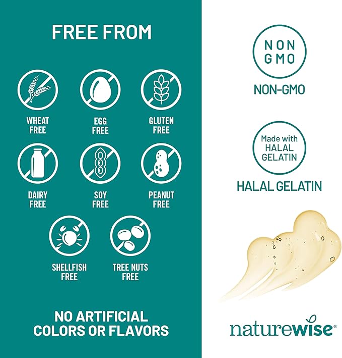 - NON-GMO, SOY-FREE: NatureWise Omega-3 500mg softgels are gluten-free and soy-free. These softgels do not contain wheat, gluten, eggs, soy, milk, peanuts, tree nuts, shellfish, GMOs or sesame seeds. This product contains fish (anchovy, mackerel, sardine).