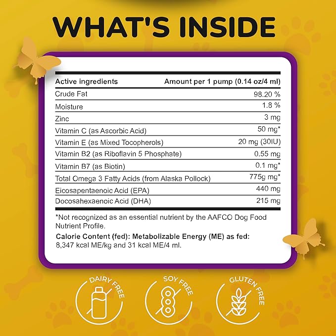 - EASY TO ADMINISTER LIQUID FORMULA - Unlike pills or chews, our fish oil for dogs easily mixes into food, ensuring your pet receives the full benefits of every serving, even for picky eaters.