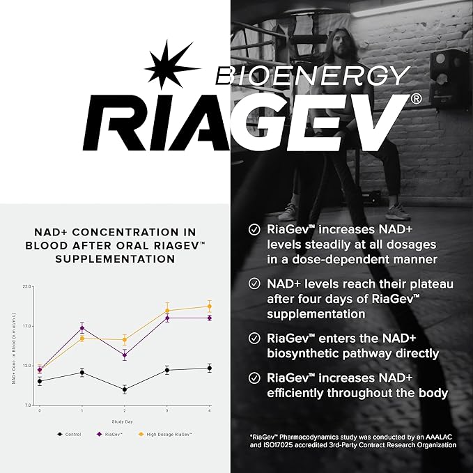 - Clinically Studied and Patented Ingredient: Our formula features RiaGev-WS, a patented ingredient that has been clinically studied and shown to effectively increase NAD+ levels, as demonstrated in a randomized, triple-blind, placebo-controlled, cross-over pilot clinical trial.