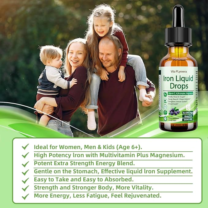 - VEGAN IRON DROPS FOR WOMEN MEN KIDS: Iron fuels your vitality by blood production, cellular health, energy metabolism, and overall health. Meanwhile, iron is oxygen-carrying superhero through the body! Adequate oxygen levels are crucial for good health, and sufficient iron intake helps ensure that you’re getting the oxygen you need. Our potent gentle yet powerful iron supplement delivers a robust 18mg of easily absorbed iron per serving, delievered a full day's worth(100% DV), to keep you and your loved ones energized