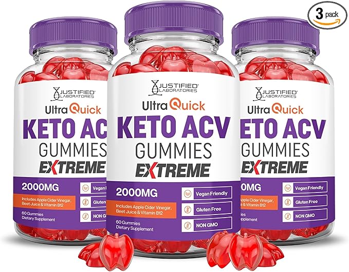Justified Laboratories (3 Pack Ultra Quick Keto ACV Gummies Extreme 2000MG Ultraquick Keto Gummies Apple Cider Vinegar Formulated with Pomegranate Beet Juice Powder B12 Vegan Non GMO 180 Gummys