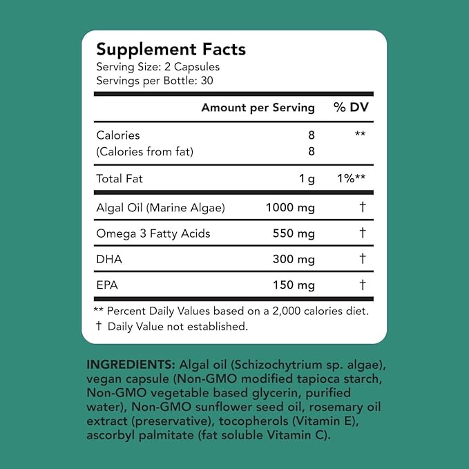 - Special Ingredients : Algal Based Omega-3 Oil, Carrageenan Free Softgels, DHA & EPA