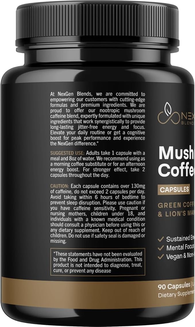 - The NexGen Difference - Say hello to our cutting edge nootropic coffee mushroom focus supplement made with Lab verified clinically studied organic ingredients packed with beneficial antioxidants