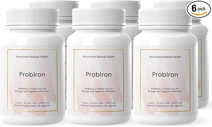 Nourished Natural Health ProbIron - Women's Probiotic + Iron Supplement Boosted with Vitamin C and Copper - Vegan Formula for Energy and Digestive Wellness - 180 Capsules