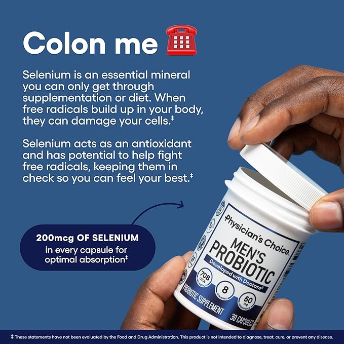 Physician's Choice Probiotics for Men - 70 Billion CFU - 8 Strains - w/Selenium & Organic Prebiotics - Supports Digestive Health, Microbiome, Colon, & Immune Health - Advanced Men's Probiotic - 30ct