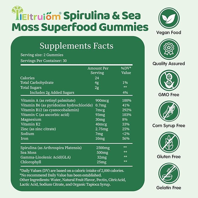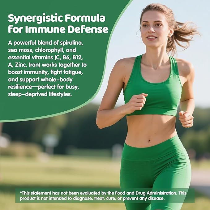 - Healthy Aging: Superfood Greens Blend loaded with Chlorophyll, Spirulina, Sea Moss, GLA, Immune Vitamins(Vitamin A, Vitamin B6, Vitamin B12, Vitamin C, Vitamin K), Minerals (Zinc, Sodium, Iron). Powerfully Supports Energy, Digestive Function, Immune System*
