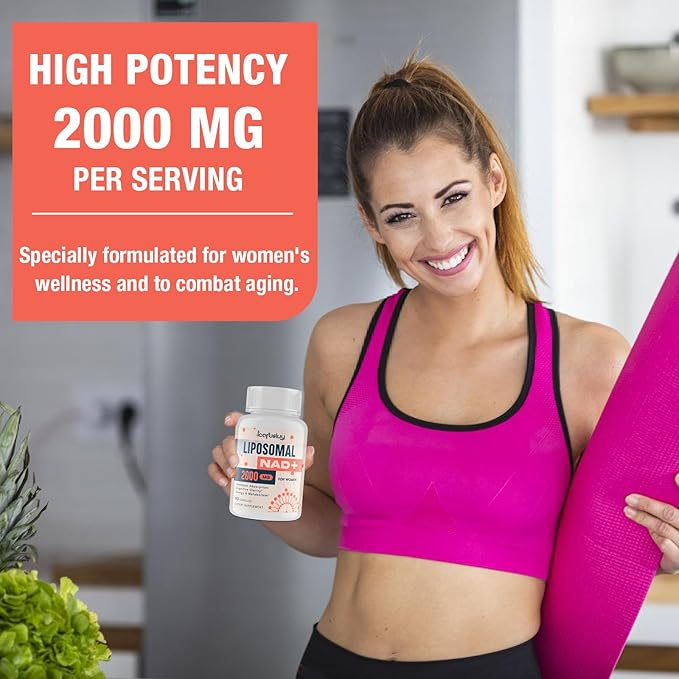 - Comprehensive Targeted for Women's Wellness Formula, 2000 mg Per Serving - This high-potency liposomal NAD+ supplement, crafted for women, delivers a potent 2000 mg per serving. It combines NAD+ with a carefully selected blend of herbal extracts tailored to women’s unique needs. As NAD+ levels decline with age, NAD+ supplement helps maintain energy levels and cognitive function, contributing to a more youthful and energized state