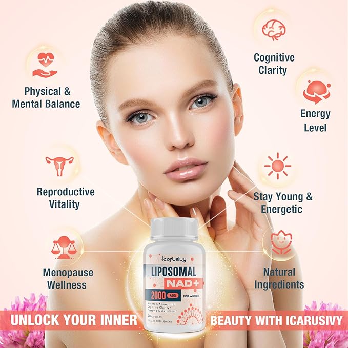 - Comprehensive Targeted for Women's Wellness Formula, 2000 mg Per Serving - This high-potency liposomal NAD+ supplement, crafted for women, delivers a potent 2000 mg per serving. It combines NAD+ with a carefully selected blend of herbal extracts tailored to women’s unique needs. As NAD+ levels decline with age, NAD+ supplement helps maintain energy levels and cognitive function, contributing to a more youthful and energized state