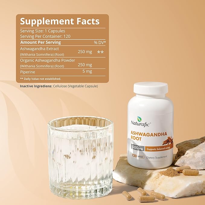 - š¹ Premium Ashwagandha Root ā Each capsule contains 500mg of pure Ashwagandha root, a traditionally used herb known for its role in supporting general wellness.