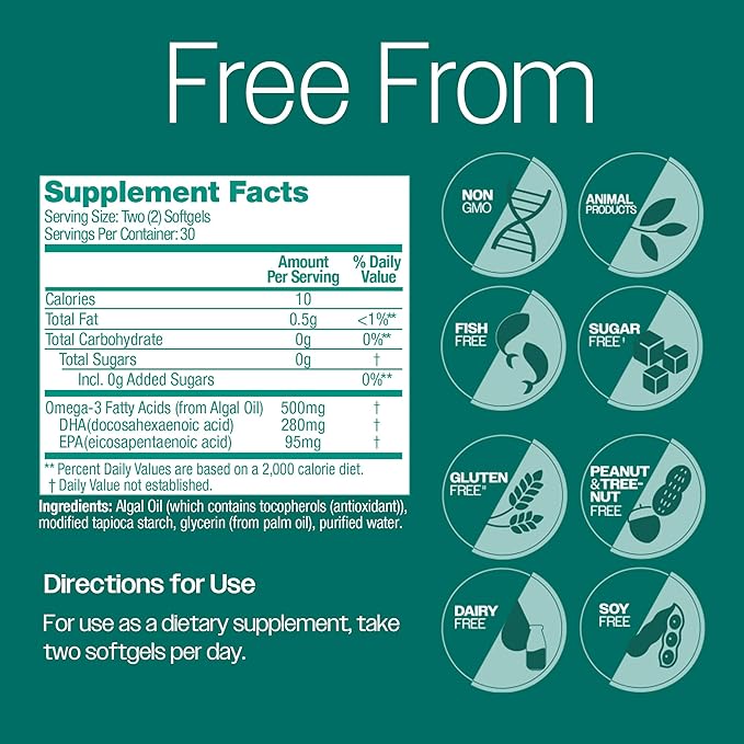 - SUSTAINABLY SOURCED & PLANT-BASED - Our omega-3s come from algae, which is the same place fish get it. We’ve cut out the middleman – fish – and go straight to the source for a more trusted and sustainable option.