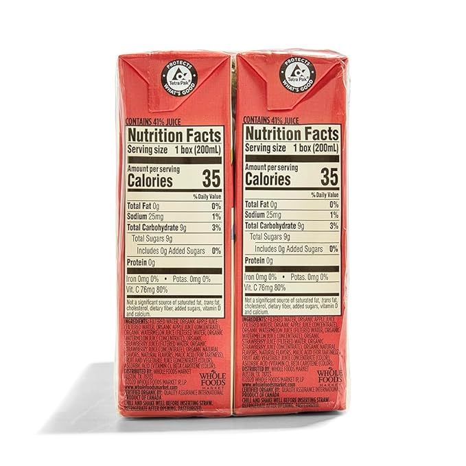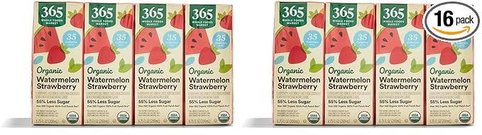 365 by Whole Foods Market, Box Juice Reduced Sugar Watermelon Strawberry Organic, 6.75 Fl Oz, 16 Pack
