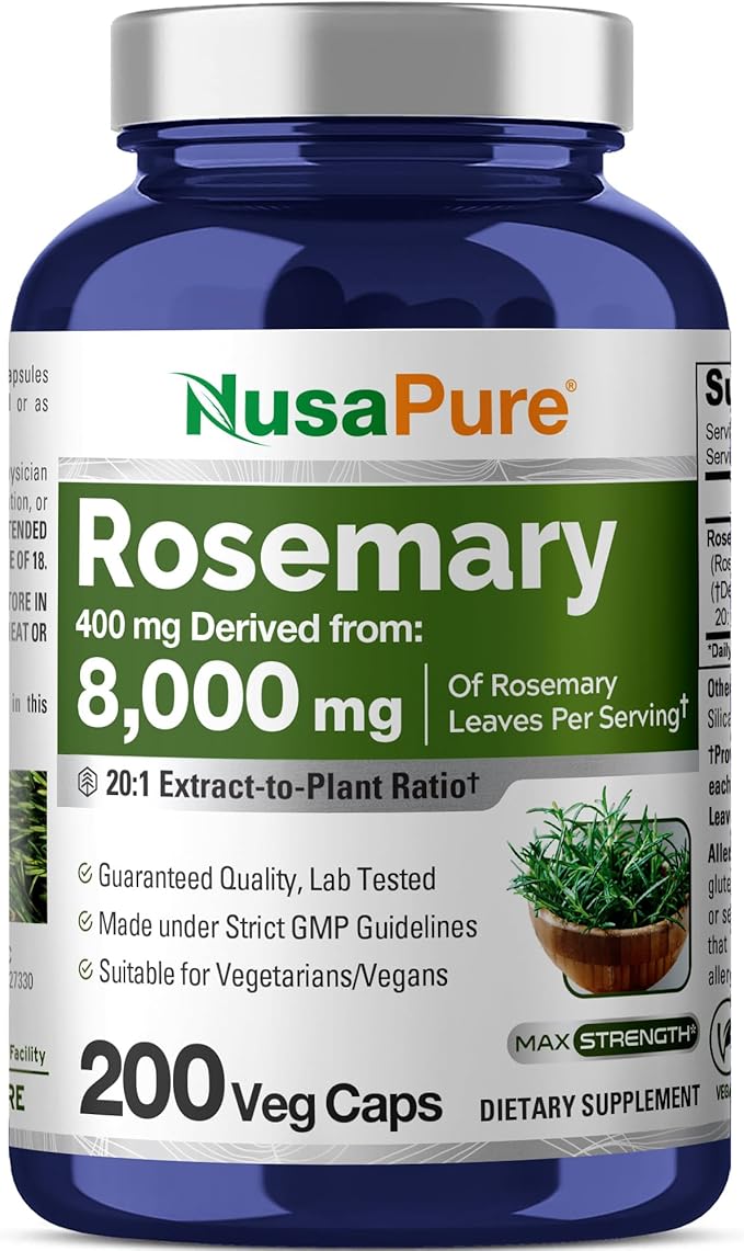 NusaPure Rosemary Capsules | 20:1 Extract, 400 mg Equivalent to 8,000mg | 200 Veggie Caps | Non-GMO