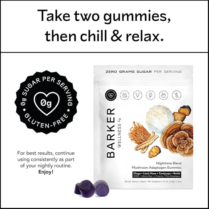 Nighttime Mushroom Adaptogen Gummies – Sugar-Free Vegan Mushroom Gummies For Adults with Reishi, Lion’s Mane, Chaga, Cordyceps, and Adaptogenic Botanicals for Sleep Support – Non-GMO, 60 Count