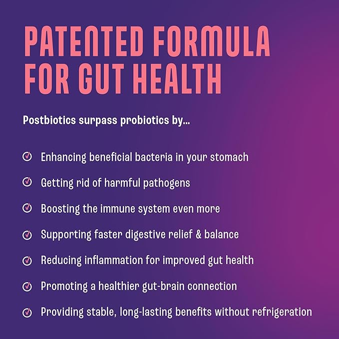 - The Power of Postbiotic Gummies - Introduce your child to a healthier tummy with our postbiotic gummies, specially formulated for little ones. Unlike regular probiotics, these gut health gummies are super-effective, helping good gut bacteria thrive while eliminating the yucky stuff. Packed with properties that fight germs, boost antioxidants, and support the immune system, these postbiotic gummies elevate your child's digestive health. Our postbiotic boasts 200x more active ingredients than other probiotics and gut health products