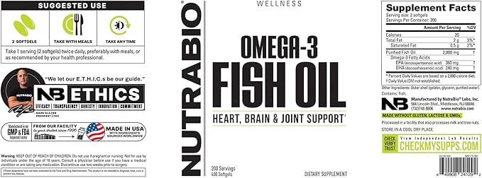 NutraBio Omega 3 Fish Oil Supplements, 2,000mg, 400 Softgels - EPA DHA Omega 3 Fatty Acid Supplement to Help Support a Healthy Heart