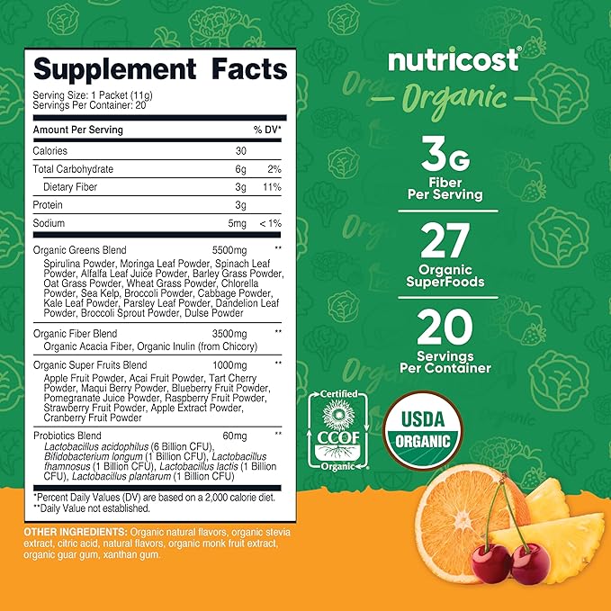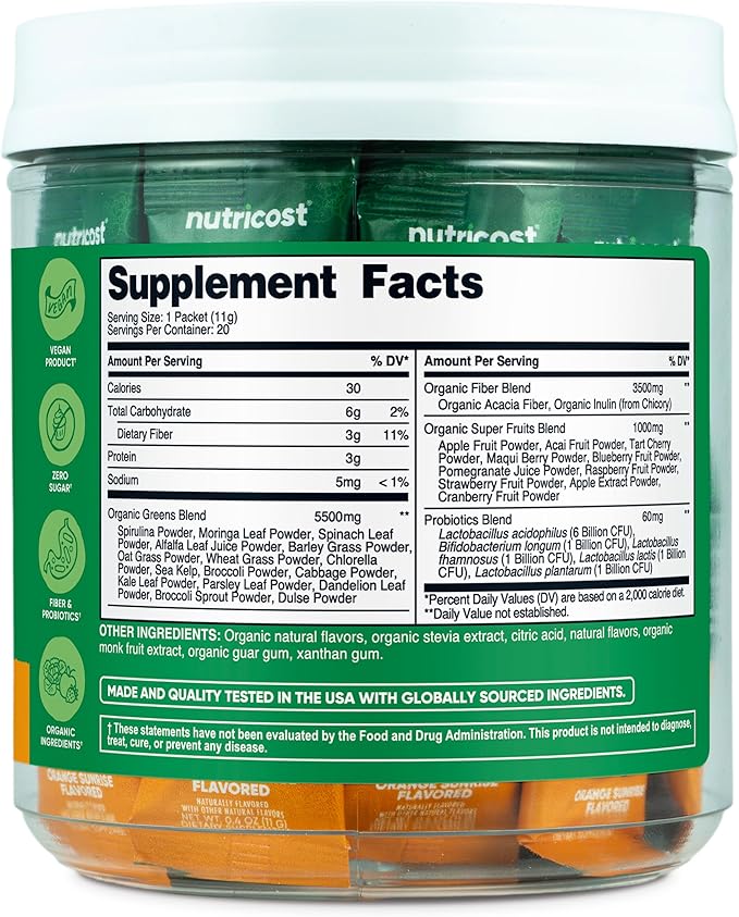 Nutricost Organic Super Greens (Orange Sunrise Flavored) 20 Stickpacks - Gluten-Free, Non-GMO