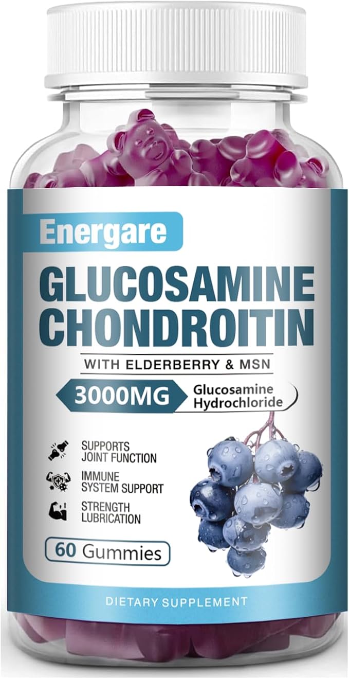 - 3000MG Extra Strength Glucosamine Chondroitin Gummies - Energare joint support supplement glucosamine chondroitin gummies are loaded with 3000mg glucosamine, 1000mg MSM and 200mg Chondroitin to help assist with comfortable movement, cushion joints and support joint structure. Energare glucosamine chondroitin gummies are ideal for sedentary office workers, sports enthusiasts, and adults with joint discomfort.