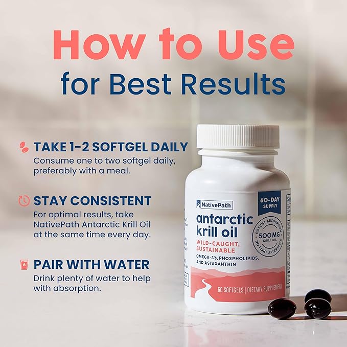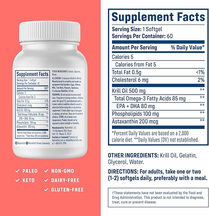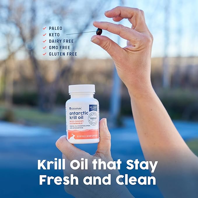 NativePath Antarctic Krill Oil - Wild-Caught Omega 3 Krill Oil 500mg Softgels with EPA, DHA and Astaxanthin - Supplement for Joint, Heart, Brain and Immunity - 60 ct - No Fishy Aftertaste
