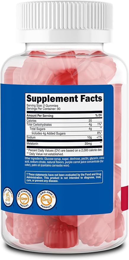 Nutricost Melatonin Gummies 20mg per Serving (180 Strawberry Flavored Gummies) - Gluten-Free