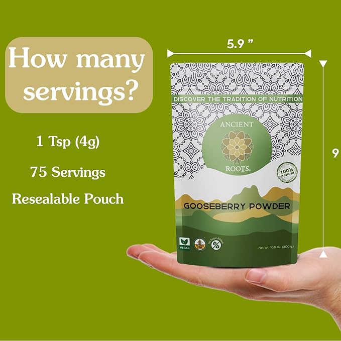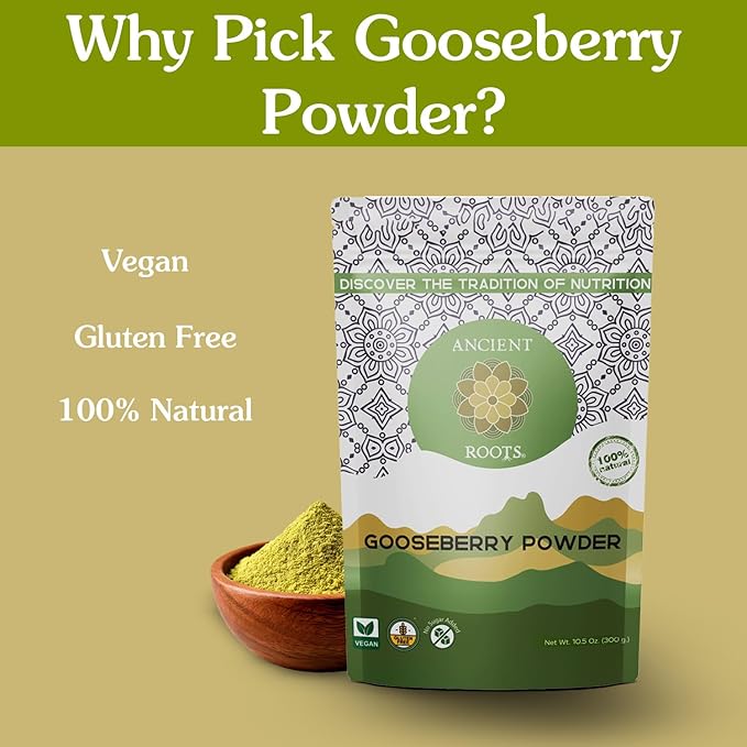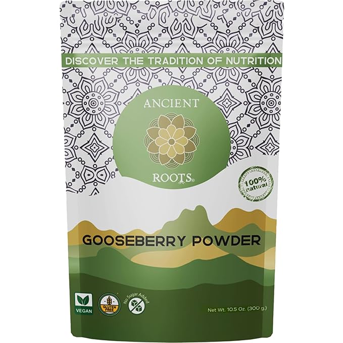 Ancient Roots Gooseberry Powder -100% Pure & Natural, Non-GMO, Gluten-Free, Finely Ground Amla for Smoothies, Teas, and Recipes, 10.5 oz Resealable Bag