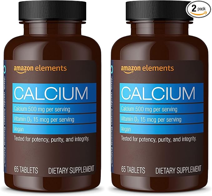 Amazon Elements Calcium Plus Vitamin D2, 65 Tablets (2 Month Supply) (Packaging May Vary) (Pack of 2)