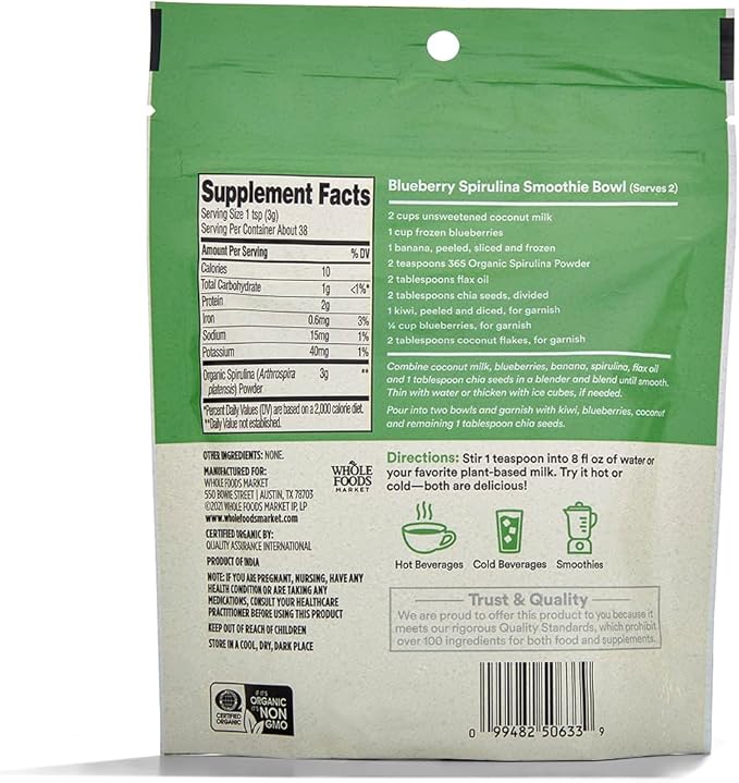 365 by Whole Foods Market, Organic Spirulina Superfood Powder, 4 Ounce (Pack of 2)