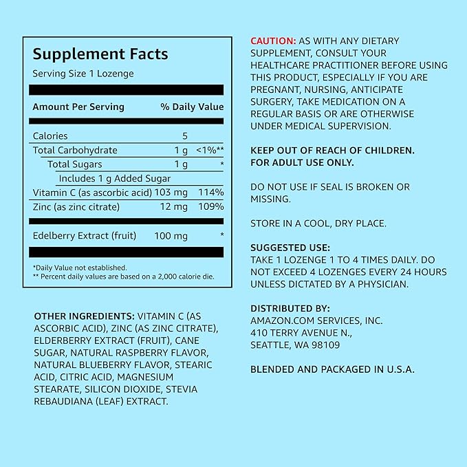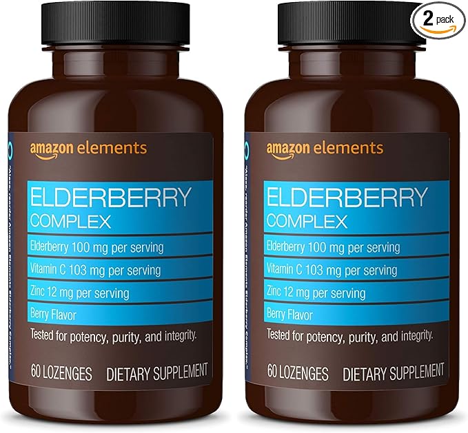 Amazon Elements Elderberry Complex Berry Flavored Immune System Support Lozenges, Adult, 60 Count, (Packaging May Vary) (Pack of 2)