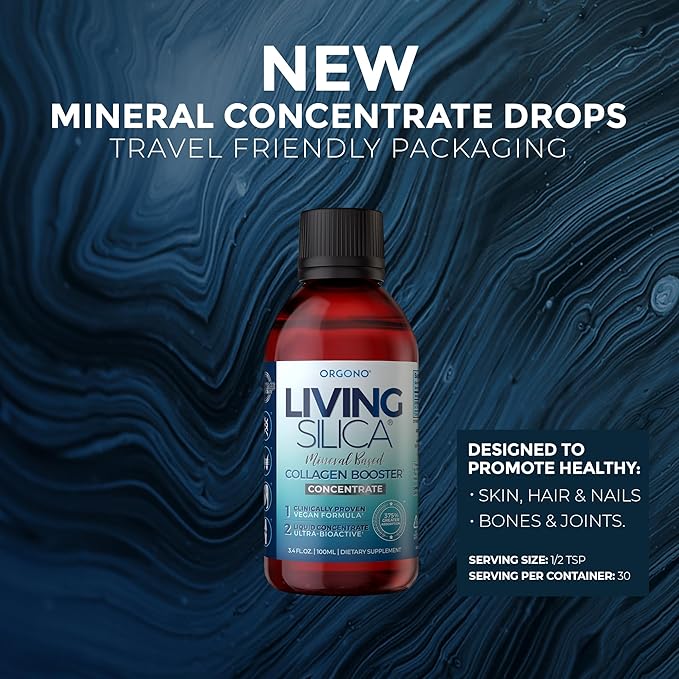 - UNLEASH YOUR OWN COLLAGEN: LIVING SILICA Mineral-Based Collagen Booster Liquid supports your own body's collagen, keratin, and elastin levels. Designed to supply a key trace element, silicon, which your body uses to promote glowing skin, stronger hair and nails, as well as healthy joints and bones for improved mobility and flexibility.