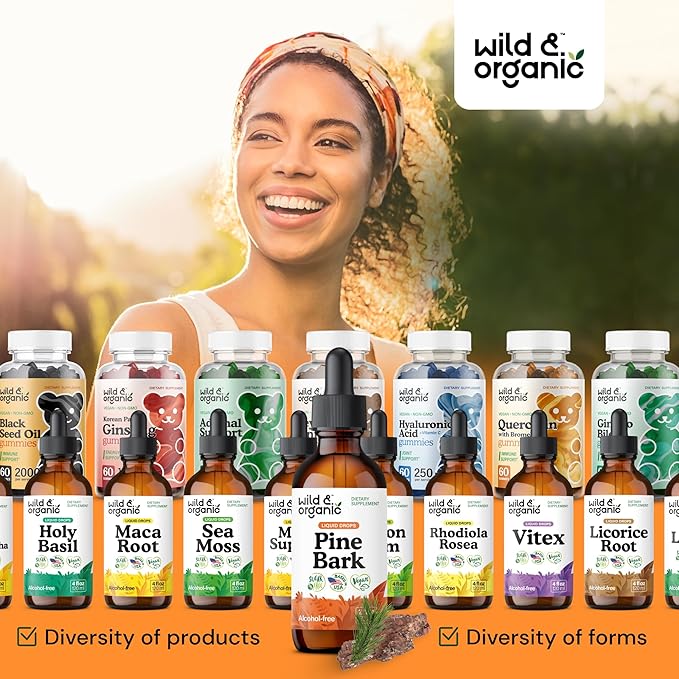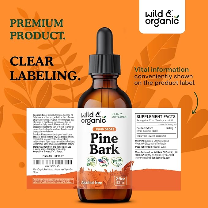 - Sweetness Without Sugar: Enjoy a pleasant supplement experience with Wild & Organic pine tree bark extract, which features a naturally sweet taste. Our drops use glycerin for natural sweetness, with no added sugar.