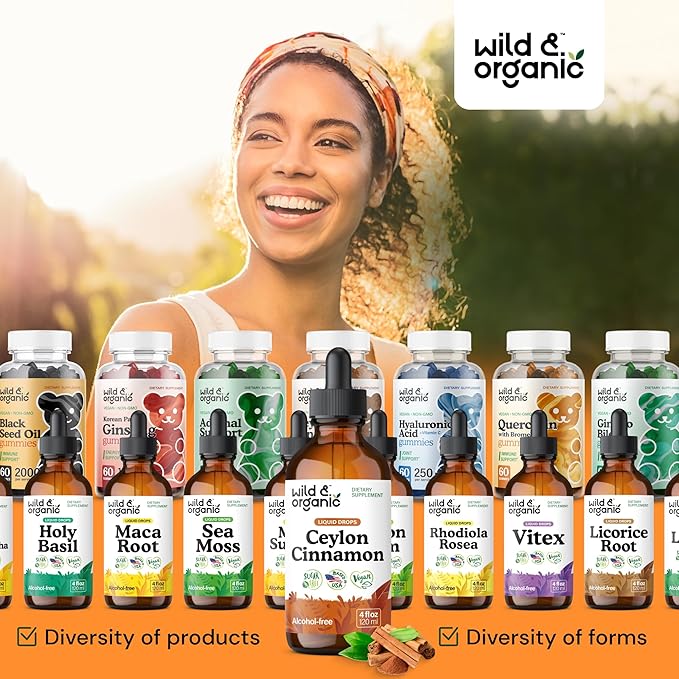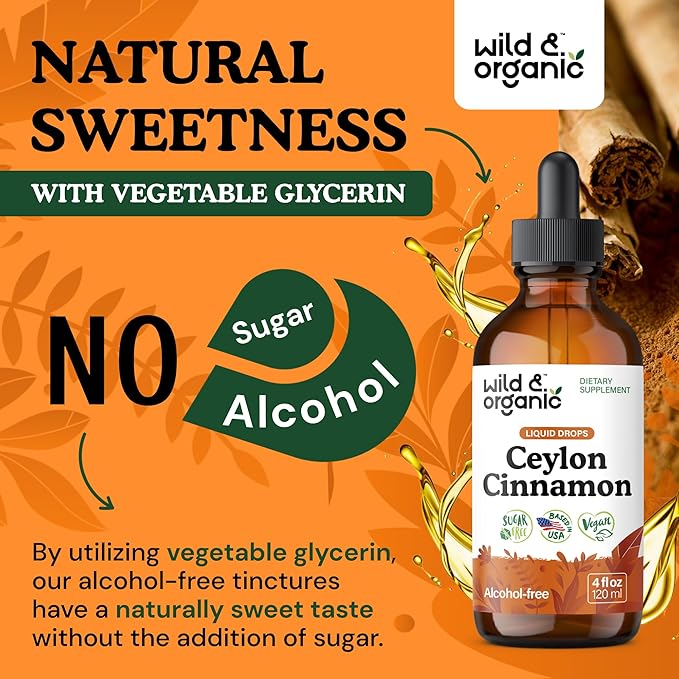- Alcohol-Free: Wild & Organic cinnamon supplements are vegetable glycerin-based, providing an alcohol-free tincture that is easy on digestion.
