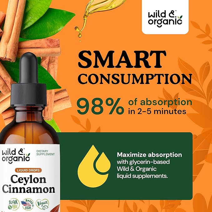 - Sweetness Without Sugar: Enjoy a pleasant supplement experience with Wild & Organic cinnamon bark extract, which features a naturally sweet taste. Our liquid Ceylon cinnamon drops use glycerin for natural sweetness, with no added sugar.