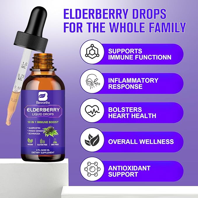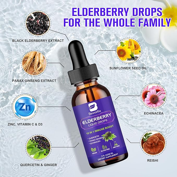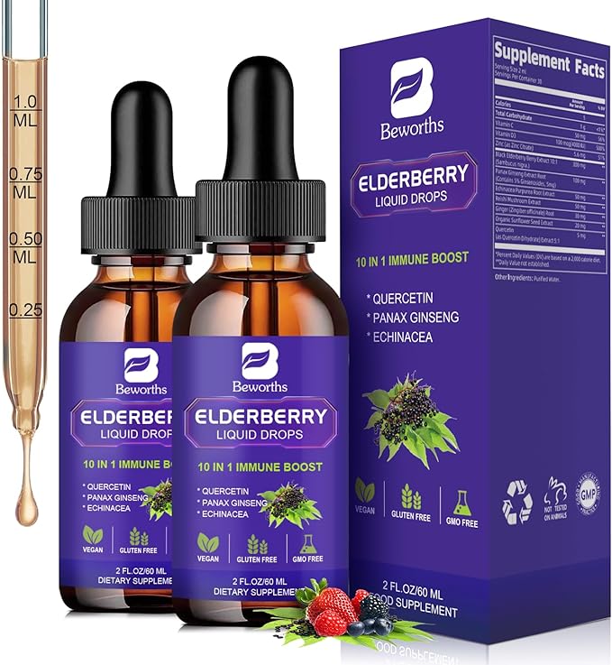 - 【Super Immune Support】elderberry Elderberries offer potent immune system support, boasting a higher content of flavonoids than blueberries, cranberries, goji berries, and blackberries; black elderberry elderberrysuperiority stems from the presence of chemical compounds known as anthocyanidins, which are renowned for their immune support effects on the body; Incorporating 10-1 elderberry extract drops into your routine provides comprehensive support.