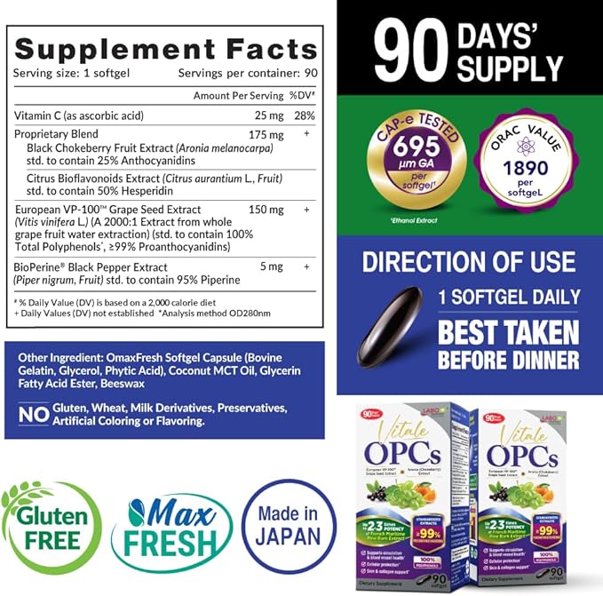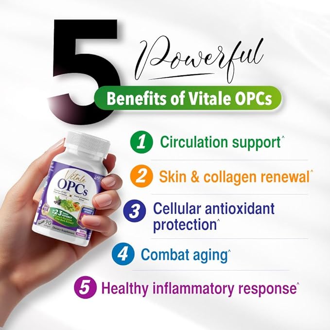 - Includes BioPerine Black Pepper Extract to optimize nutrient absorption and Cap-e tested for antioxidant capacity. Vitale OPCs can penetrate living cells to protect them from the inside out, enhancing overall cellular protection.