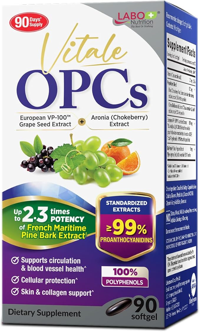 LABO Nutrition Vitale OPCs | Premium European Grape Seed Extract with Aronia, Citrus Bioflavonoids | Supports Circulation, Skin Health and Cellular Protection | 100% polyphenols 90 Softgels