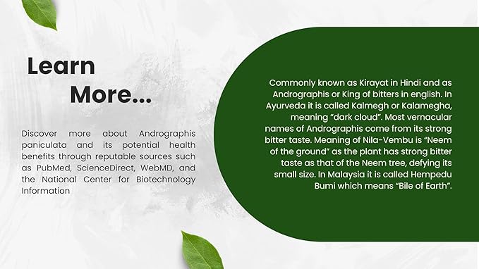 - Fresh & Pure: Sourced and processed to preserve the freshness and potency of the Andrographis paniculata plant.