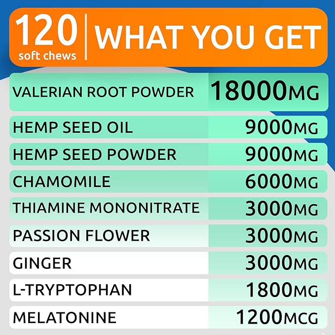 - Advanced Dog Calming with Melatonin - formulated with known effective calming ingredients, like hemp oil, valerian root, chamomile and melatonin, this treats are effective but more importantly safe and healthy supplements. No chemical relaxants or sedatives are used. Suitable for hyper dogs of all breeds, sizes. Safe to use for puppies as well.
