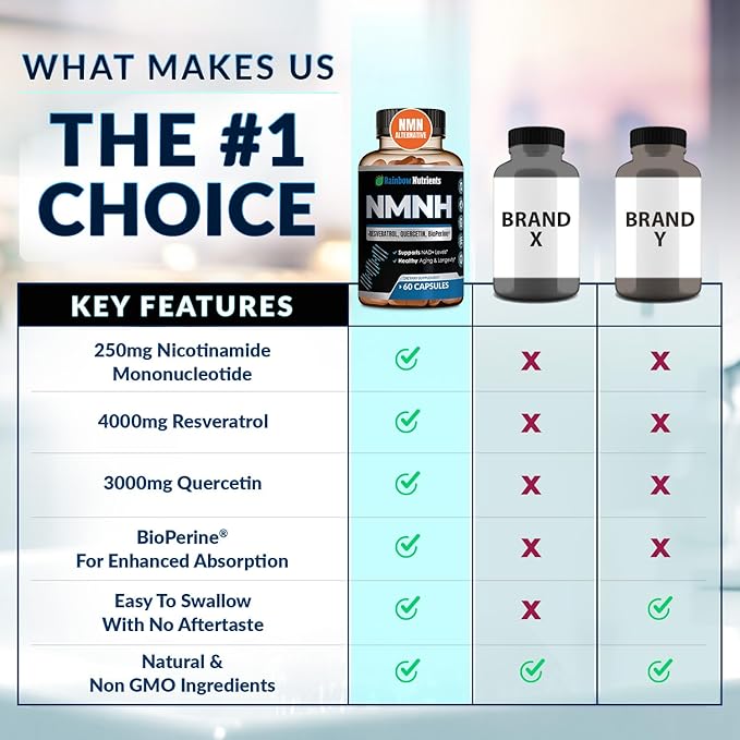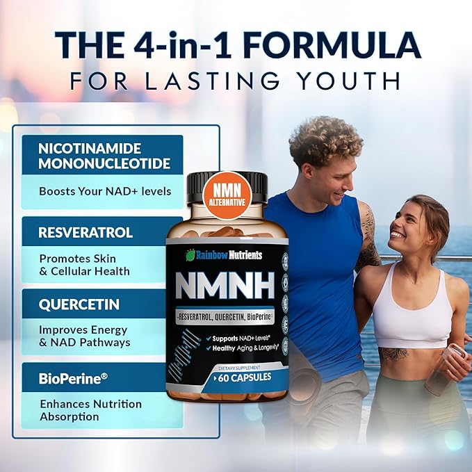- ENHANCED ABSORPTION WITH BioPerine: Includes patented BioPerine to help increase absorption and bioavailability of NMNH, Resveratrol & Quercetin. Get the most out of every capsule & Improved energy, skin health, and performance.