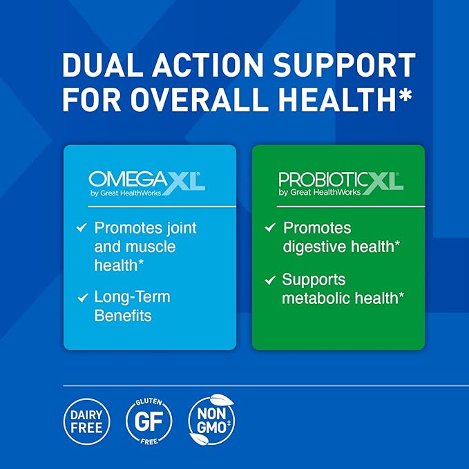 OmegaXL Powerful Joint and Muscle Support Supplement 60 Count (2 Pack) & Probiotic XL - PreforPro, DE111, Shelf Stable - Promote Healthy Gut Flora Growth (30 Veggie caps)