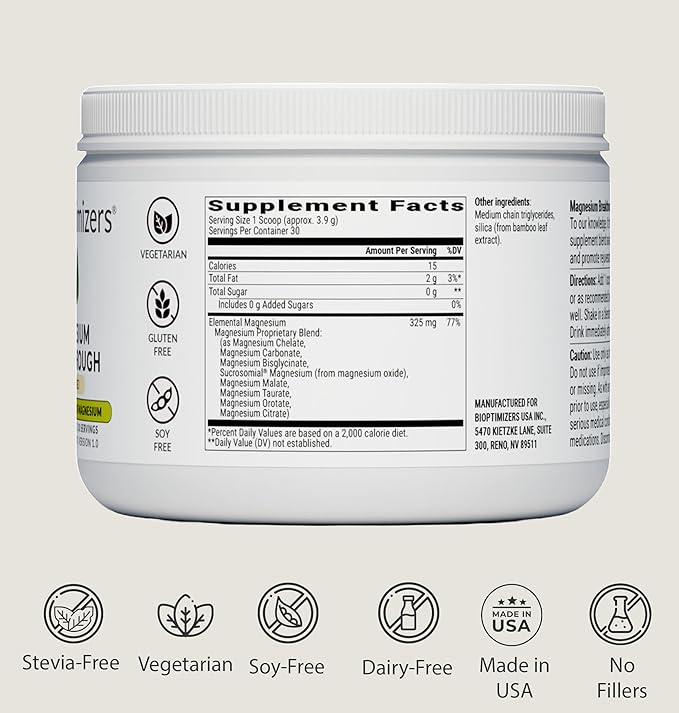 - 8 Powerful Forms of Magnesium: BIOptimizers Magnesium Breakthrough Drink combines 8 bioavailable forms like Magnesium Glycinate, Citrate, Malate, and Taurate for stress relief, restful sleep, cardiovascular function, and muscle recovery support